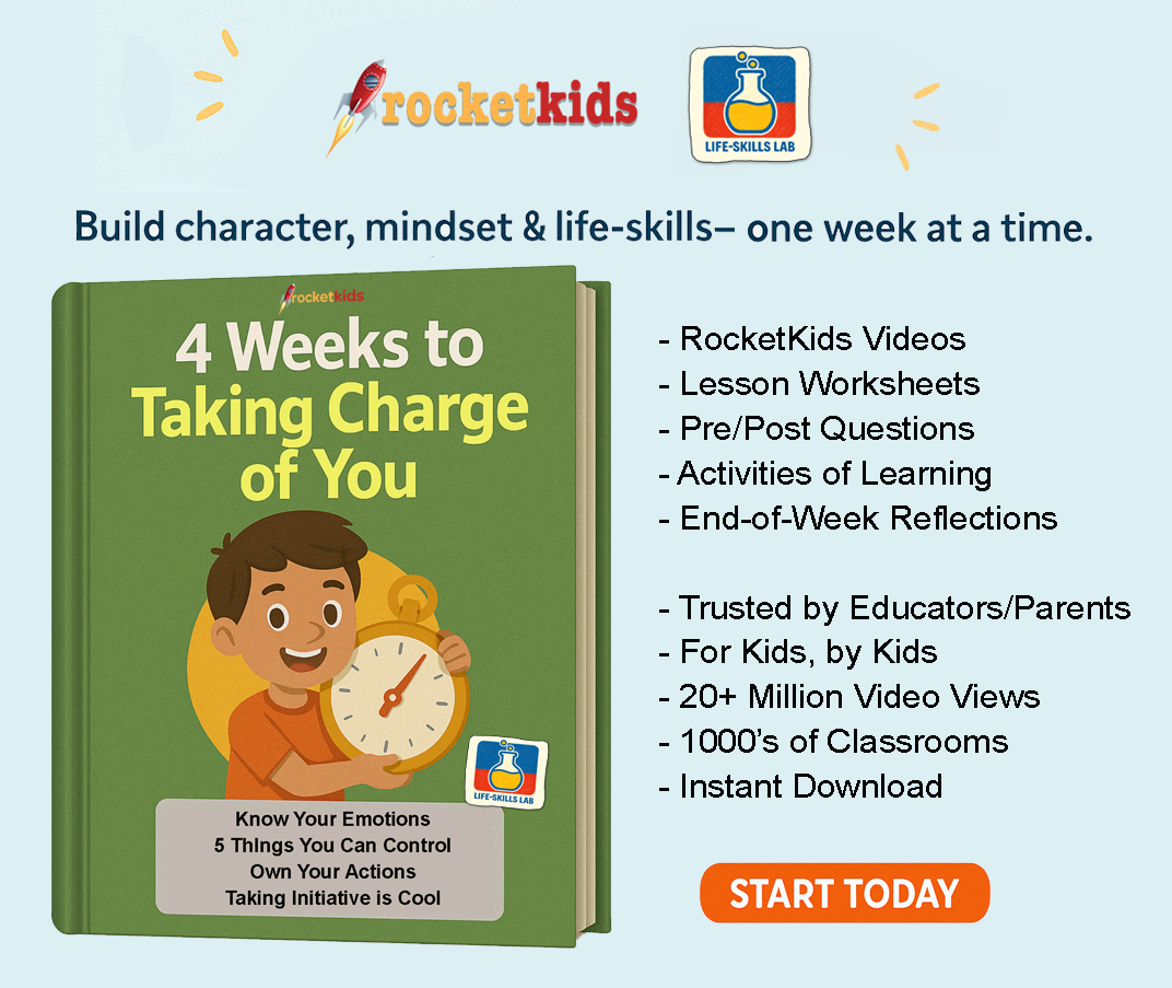 With 20+ million views and used in thousands of classrooms, around the world, RocketKids is now available in compact, easy-to-follow, and relevant 4-week courses. The Life-Skills Lab helps kids build character, mindset, and life-skills —one powerful lesson at a time.