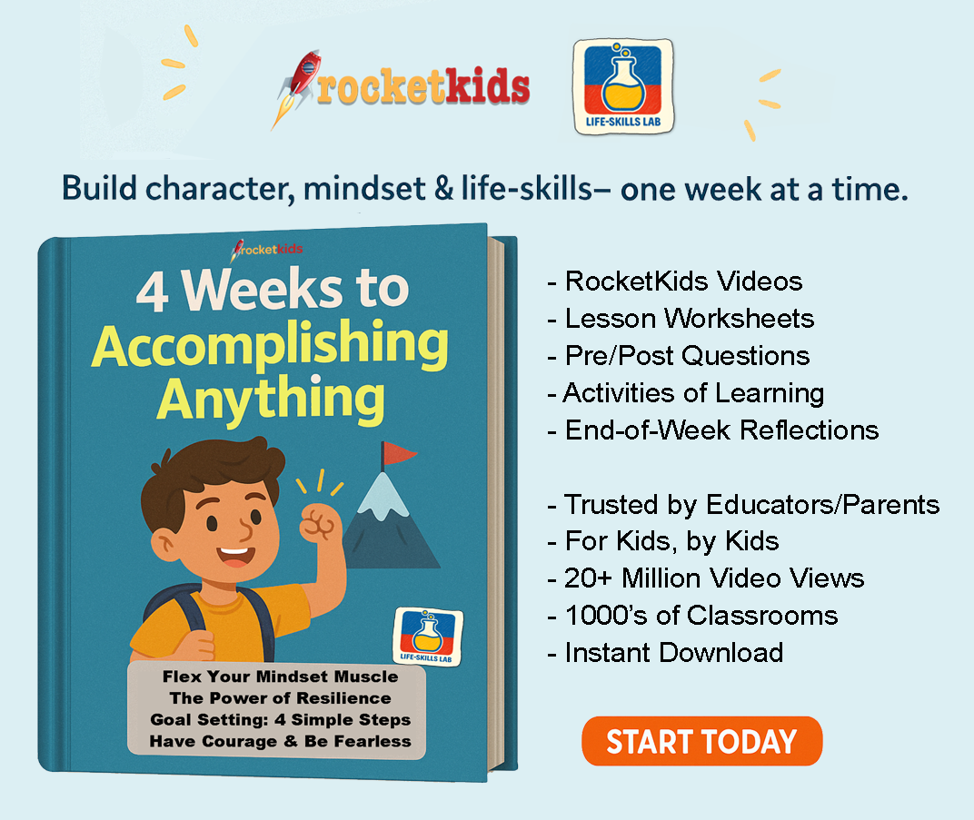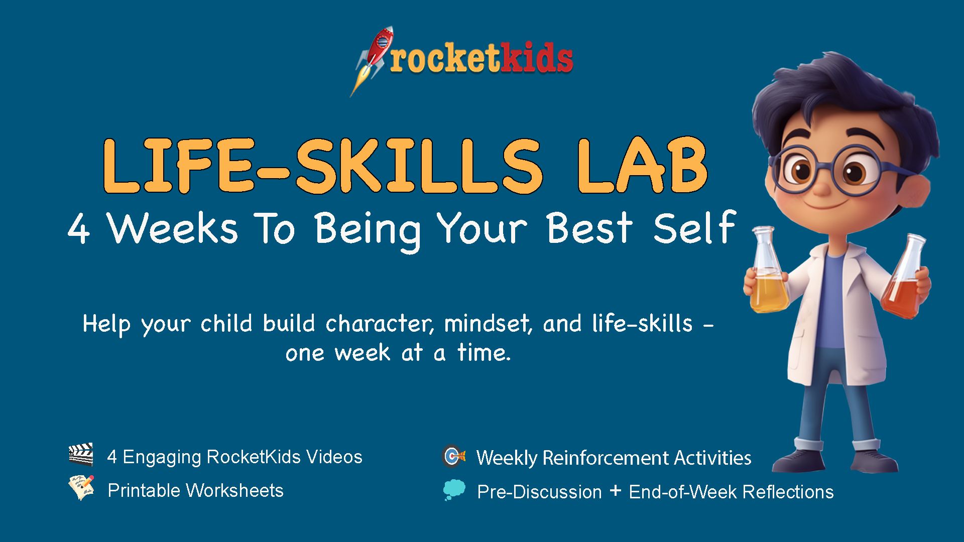 With 20+ million views and used in thousands of classrooms, around the world, RocketKids is now available in compact, easy-to-follow, and relevant 4-week courses. The Life-Skills Lab helps kids build character, mindset, and life-skills —one powerful lesson at a time.