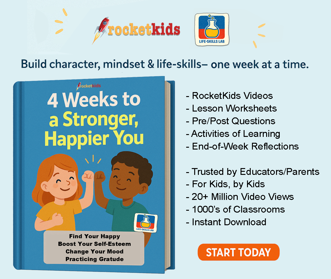 With 20+ million views and used in thousands of classrooms, around the world, RocketKids is now available in compact, easy-to-follow, and relevant 4-week courses. The Life-Skills Lab helps kids build character, mindset, and life-skills —one powerful lesson at a time.